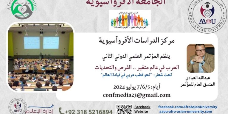 تعتزم الجامعة الأفروآسيوية تنظيم مؤتمرها العلمي الدولي الثاني بداية شهر يوليو المقبل، لتقريب الباحثين والقراء الكرام من أهداف المؤتمر وحيثيات انعقاده نستضيف في هذا الحوار المنسق العام للمؤتمر والمستشار الثقافي لمركز الدراسات الأفروآسوية المحتضن لهذا المؤتمر الكبير، الكاتب الصحافي عبدالله العبادي والذي يشغل أيضا مدير إدارة الإعلام بالأفروآسيوية، ليحدثنا بإسهاب عن أبرز محاور وأهداف المؤتمر الثاني للأفروآسيوية.