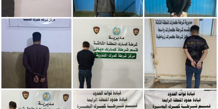 قوات الحدود تلقي القبض على (10) متهمين بحوزتهم مواد مخدرة في البصرة وديالى وواسط وميسان..