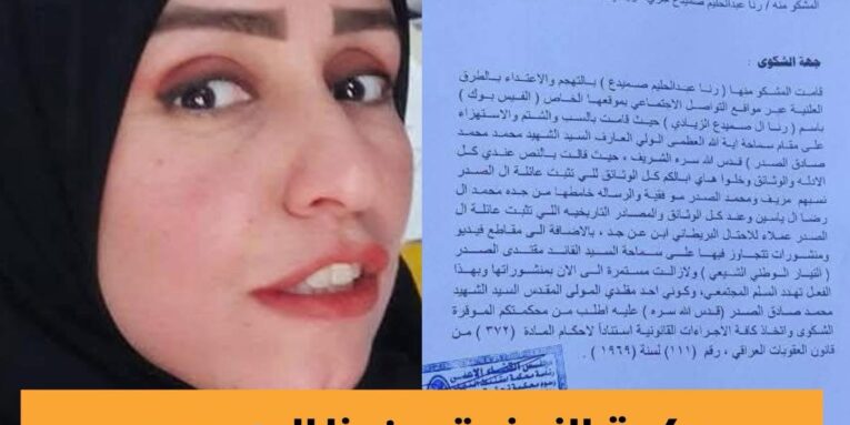 أصدر القضاء في محافظة النجف الأشرف، اليوم الخميس (29 أيار 2025)، حكماً يقضي بالحبس لمدة أربعة أشهر بحق الناشطة رنا عبد الحليم الصميدعي، المعروفة بمواقفها المعارضة لسياسات زعيم التيار الصدري مقتدى الصدر، بعد إدانتها بالإساءة إلى آل الصدر، وذلك استناداً إلى المادة 372 من قانون العقوبات العراقي، على خلفية مقاطع فيديو نشرتها عبر “فيسبوك” تضمّنت انتقادات حادة أثارت جدلاً واسعاً