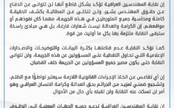 بيان غاضب لنقابة المهندسين: حادثة المهندس بشير اعتداء صارخ على كرامة الانسان العراقي اكدت نقابة المهندسين العراقيين ان حادثة وفاة المهندس بشير خالد نتيجة التعذيب ليست مجرد حادثة عابرة، بل...