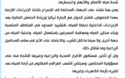 أمانة بغداد تنفي وجود تلوث في مياه الشرب وأكد مدير إعلام دائرة ماء بغداد، حامد غازي الدراجي، في تصريح أن "الأمانة متمثلة بقسم المختبرات التابع لدائرة ماء بغداد تجري فحوصات...
